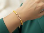 دستبند بند ابریشمی طلا مدل خورشید، ساخته شده از طلای ۱۸ عیار با طراحی مینیمال و ظریف، بهترین انتخاب برای زیبایی و استایل خاص شما.