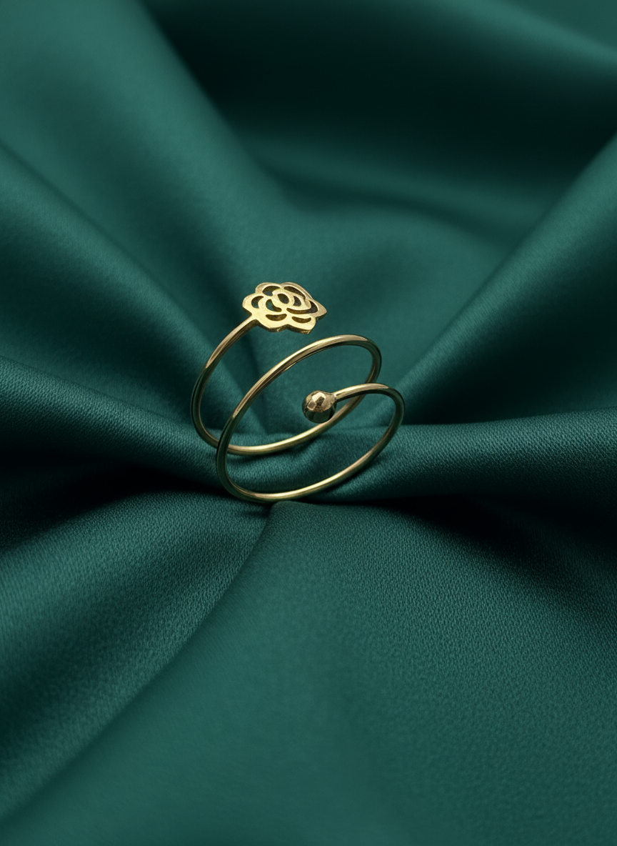 انگشتر طلا گلدار مدل پیچ با طراحی مینیمال و ظریف، انتخابی خاص و زیبا برای استایل شما. قیمت مناسب و کیفیت عالی.