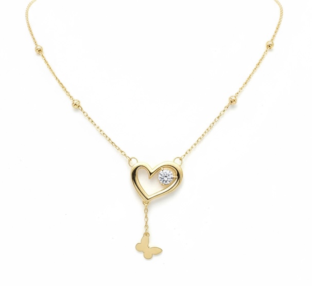 گردنبند طلا طرح قلب و پروانه با طراحی مینیمال و طلای ۱۸ عیار، ویژه استایلهای خاص و شیک در گالری طلا و جواهرات.