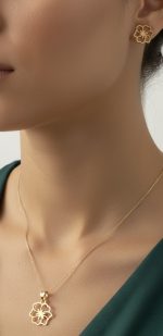 نیم ست طلا طرح گل با طراحی مینیمال از طلای ۱۸ عیار، ساخته شده در معتبرترین کارگاههای تهران؛ زیورآلاتی خاص برای هر سلیقه.